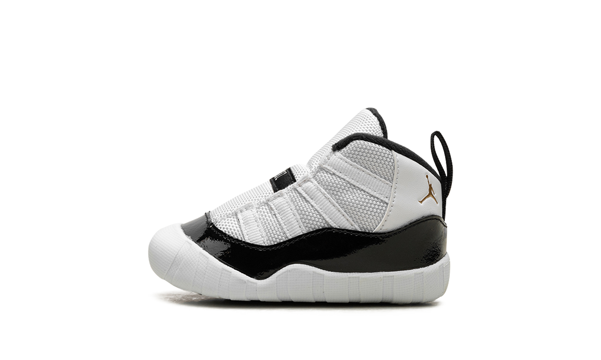 The Air Jordan 11 Crib “Gratitude” is the infant sizing of the Holiday 2023 Air Jordan 11 release. Also nicknamed the “Defining Moment Pack” or simply “DMP” colorway, the Jordan 11 “Gratitude” is based on the retro basketball sneaker’s original “Concord” colorway that was worn by Jordan with the Chicago Bulls throughout the team’s historic run during the 1995-96 NBA season. The upper features a white ballistic mesh construction with white leather appearing on the heel. A glossy black patent leather mudguard contrasts the shoe’s neutral base. Metallic Gold Jumpman branding is found on the collar. Release date: December 9, 2023