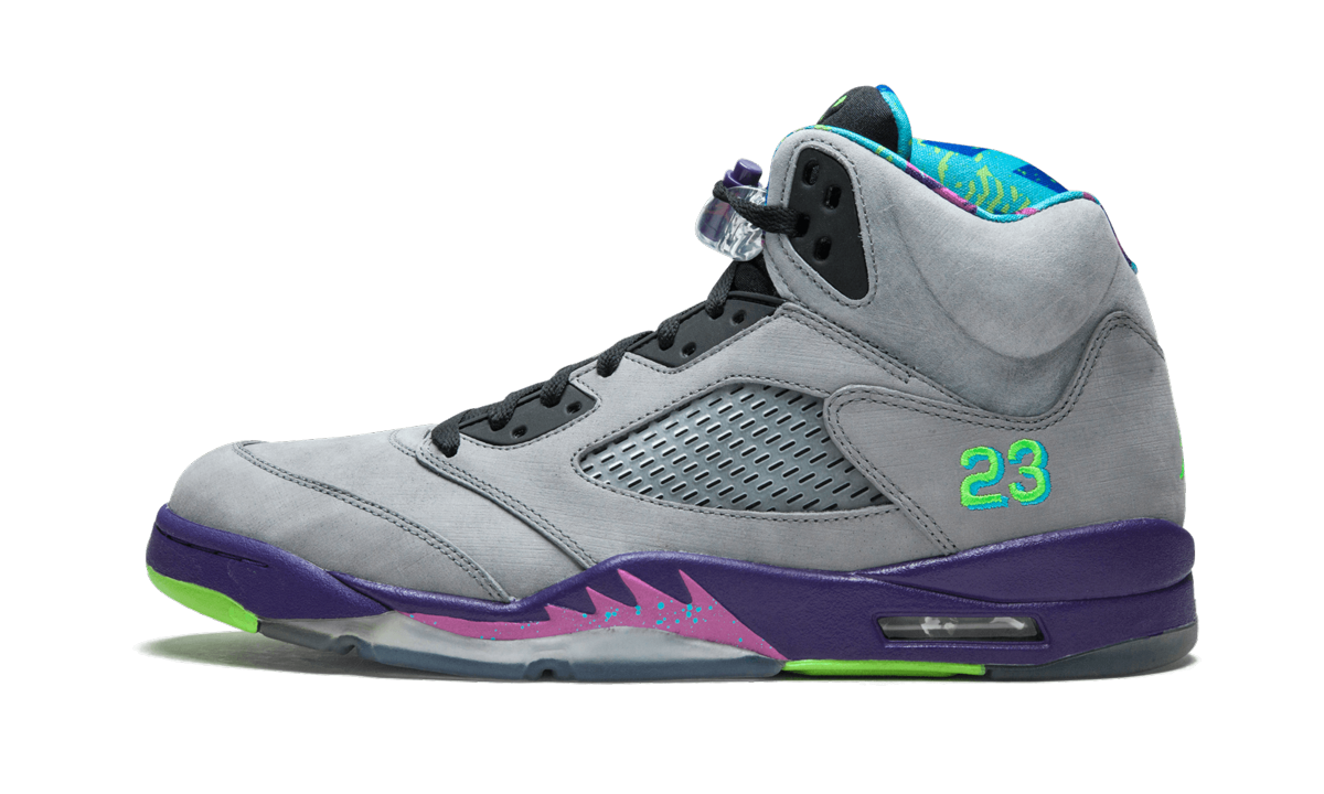 This vibrant Air Jordan 5 colorway was inspired by the classic ‘90s TV show the Fresh Prince of Bel-Air starring Will Smith who famously rocked the Air Jordan 5 in early episodes. The ‘90s vibe is obvious, with the multi-colored neon accents and wild print on the inner lining.