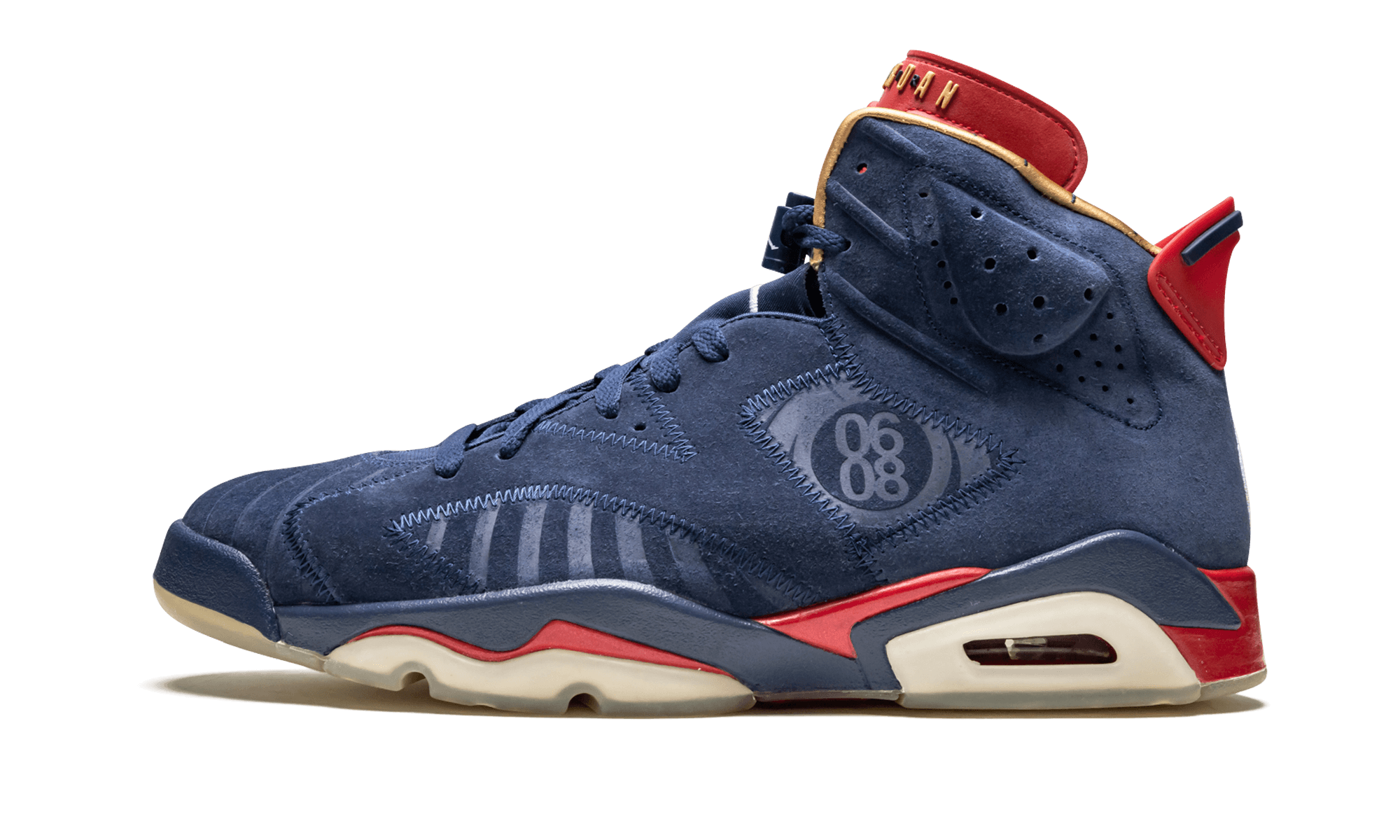 Agreed upon by most as one of the best Doernbecher Freestyle Air Jordan Retro colorways, this Air Jordan 6 from 2009 features a blue suede upper with red and gold accents for an almost “Olympic” vibe, completed with a fully clear outsole. The clean design by Doernbecher patient Jordan Dark has stood the test of time, and is now one of the most valuable Air Jordan 6 releases ever.